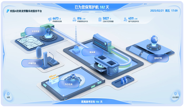 全校园覆盖·无死角防御 语音识别·自动报警 双向对讲·即时通讯 防欺凌安全教育深度渗透 响应政策·多平台多级管理 欺凌事件数据一目了然